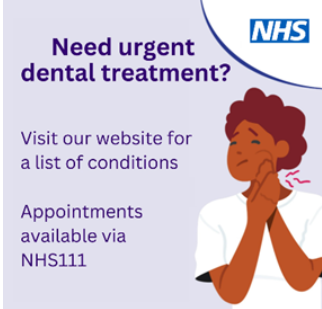 People who need an urgent dental appointment should visit NHS 111 online or call 111.